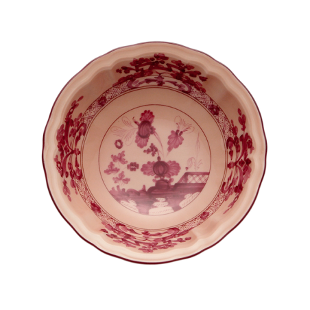Porcellana sottosmalto e vetrificata. Resistente alla lavastoviglie. Collezione Oriente Italiano sulla forma Antico Doccia dove aerografo e fantasia del colore creano un meraviglioso intreccio decorativo. Dimensioni: diametro cm 15.