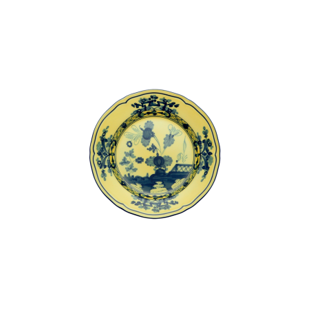 Porcellana sottosmalto e vetrificata. Resistente alla lavastoviglie. Collezione Oriente Italiano sulla forma Antico Doccia dove aerografo e fantasia del colore creano un meraviglioso intreccio decorativo. Dimensioni: diametro cm 17.