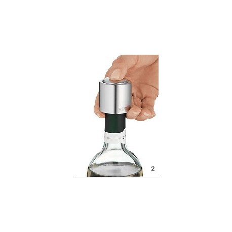 Di facile utilizzo. Basta esercitare una piccola pressione e il tappo chiude la bottiglia ermeticamente. Premendo il bottoncino situato nella parte superiore, si riapre facilmente.