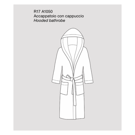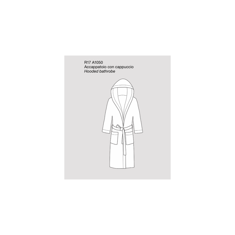 100% double-twisted cotton jacquard terry towelling, 500 g/m2. Hooded bathrobe available in various colors. Size M.