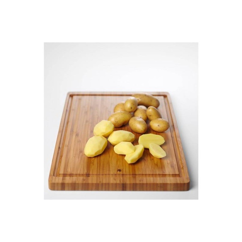Strengths. Made of bamboo. Resistant material but softer than the blade, suitable for any type of cut. Hygienic, robust and long lasting. Easy to clean. Product description. No wonder, after all, cutting boards are an essential part of any kitchen. And not only that: it is advisable to use different cutting boards for different foods, this way you can prevent unwashed vegetable germs from spreading on the meat if you use the same cutting board. When choosing a cutting board you can select the most suitable one, according to your preferences: from bamboo, acacia or plastic models. All WMF cutting boards are cut and scratch resistant, protect knife blades and have a long service life.