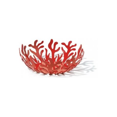 Fruttiera rotonda in acciaio colorato rosso e nero con resina epossidica e in acciaio inossidabile 18/10, con bordo stampato. Il decoro “Mediterraneo” di LPWK – Emma Silvestris è l’esempio più recente di decoro il cui successo impone la creazione di una famiglia.