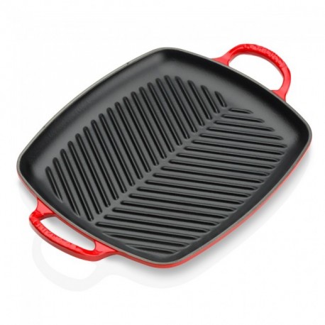 Grill Le Creuset rectangular in enameled cast iron Dimensions: 30 x 27 cm. Compatible with any heat source: glass ceramic, halogen, induction, gas, or barbecue. Unlimited warranty.