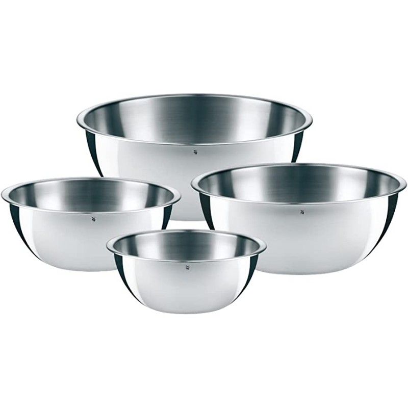 Set 4 ciotole in acciaio inossidabile 18/10 Cromargan. Robuste, resistenti agli acidi dei cibi, neutrali ai sapori e agli odori, estremamente igieniche e lavabili in lavastoviglie.