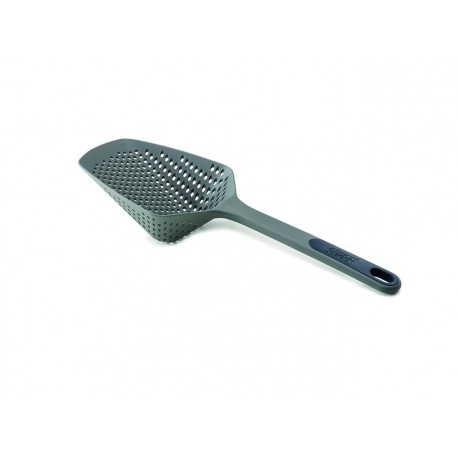 Mestolo scolapasta 13x8x34cm. Disponibile nel colore grigio o verde acido. Cucchiaio per raccogliere e scaricare direttamente da una padella bollente. Ideale per filtrare e servire verdure, pasta e cibi fritti. Resistente fino a 200 ° C. Adatto per pentole antiaderenti. Impugnatura in silicone.