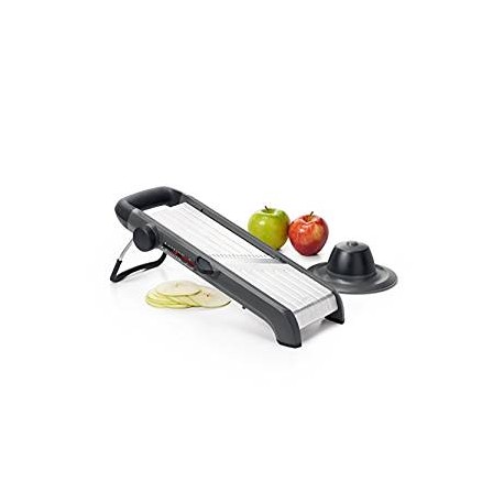 La mandolina OXO e' lo strumento perfetto per creare sensazioni gastronomiche rapidamente e facilmente. Tutte le lame sono coperti in modo sicuro quando non in uso. Una maniglia morbida impostata più bassa rispetto al corpo garantisce una presa comoda e mantiene la mano fuori strada , e in largo , piedini antiscivolo mantenere la Mandoline stabile e sicuro sul piano di lavoro . Il titolare cibo grande detiene il cibo in modo sicuro , protegge le dita e ha una impugnatura morbida per il massimo comfort . Lo storage è un gioco da ragazzi : tutte le lame conservare a bordo per una maggiore sicurezza e comodità , le gambe si piegano compatto , e il titolare cibo scatta sotto. Tutte le lame sono facilmente rimovibili per la pulizia.