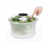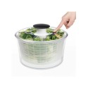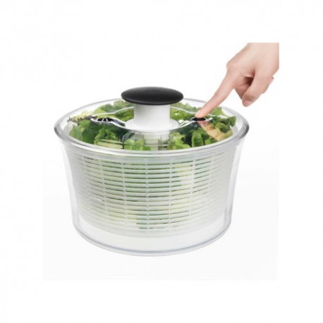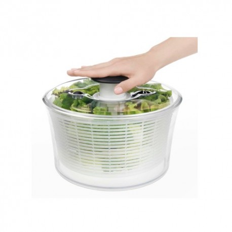 Centrifuga insalata con dispositivo per la centrifuga a pompa brevettato, pulsante freno centrifuga e base antiscivolo. La capacità è di 4.49-quarti. Coperchio piatto per agevolare le impilamento quando non in uso. Coperchio trasparente smonta per una facile pulizia. Top-rack. lavastoviglie. BPA free.