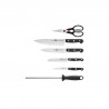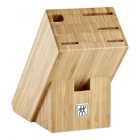 Questo ceppo di coltelli da 7 pezzi per uso universale della linea ZWILLING Gourmet include un coltello per lardellare e decorare (lunghezza della lama 10 cm), un coltello multiuso (13 cm), un coltello trinciante (16 cm), un coltello da chef (20 cm), un acciaino e delle forbici multiuso. Tutti i coltelli del set sono dotati di una lama FRIODUR®, che viene temprata con ghiaccio seguendo un particolare processo. In questo modo le lame acquisiscono una grande robustezza e resistenza alla corrosione. Il manico nero in materiale sintetico, con il suo classico design a tre rivetti, garantisce una presa confortevole grazie alla sua forma ergonomica. Il ceppo è realizzato in puro legno di bambù, perfetto per riporre in sicurezza i tuoi coltelli da cucina.