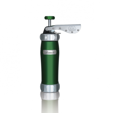 Ruotando semplicemente il regolatore otterrai biscotti di diverse grandezze: posizione 1: biscotti piccoli posizione 2: biscotti grandi Biscuits è una macchinetta facile da usare senza bisogno di carta da forno o burro nella teglia: con una sola carica del cilindro e un semplice gesto riuscirai a fare ben 20/25 biscotti grandi o 35/40 biscotti piccoli. La sua forma ergonomica, realizzata in lega di alluminio anodizzato per alimenti, è colorata in ossi colorazione per non rilasciare alcun residuo sull'impasto. Biscuits garantisce biscotti fatti in casa puri e sani al 100% racchiudendo le linee guida dell'azienda in termini di ricerca, sviluppo e tecnologia. Con questo prodotto vivrai un momento di divertimento con i tuoi figli e di convivialità in famiglia. Ottima idea regalo, Biscuits è la macchinetta che vi farà riscoprire il gusto e la genuinità dei biscotti fatti in casa come quelli della nonna. Importante: 1. Non usare carta da forno 2. Non lavare in lavastoviglie 3. Non pulire con oggetti metallici 4. Pulire con acqua calda e detersivo