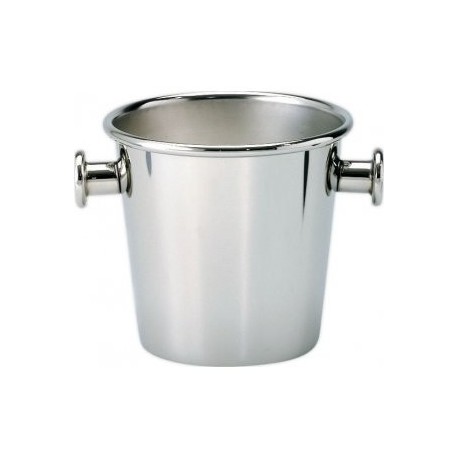 Acciaio inossidabile 18/10 esterno lucido, interno satinato. Secchiello per ghiaccio con manici e griglia in acciaio. Dimensioni: h cm 14 - diametro cm 14,5. Capacita': cl 150. Design by: Ettore Sottsass.