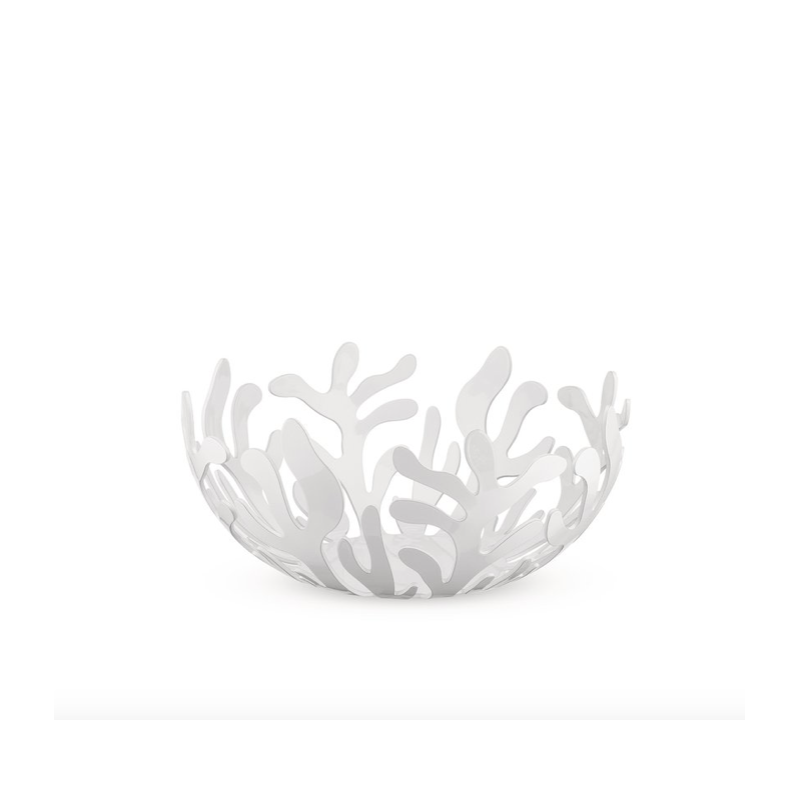 Fruttiera rotonda in acciaio colorato rosso, bianco, nero e native biscuit, con resina epossidica e in acciaio inossidabile 18/10, con bordo stampato. Il decoro “Mediterraneo” di LPWK – Emma Silvestris è l’esempio più recente di decoro il cui successo impone la creazione di una famiglia. Dimensioni: h cm 10,8 - diametro cm 29,00.
