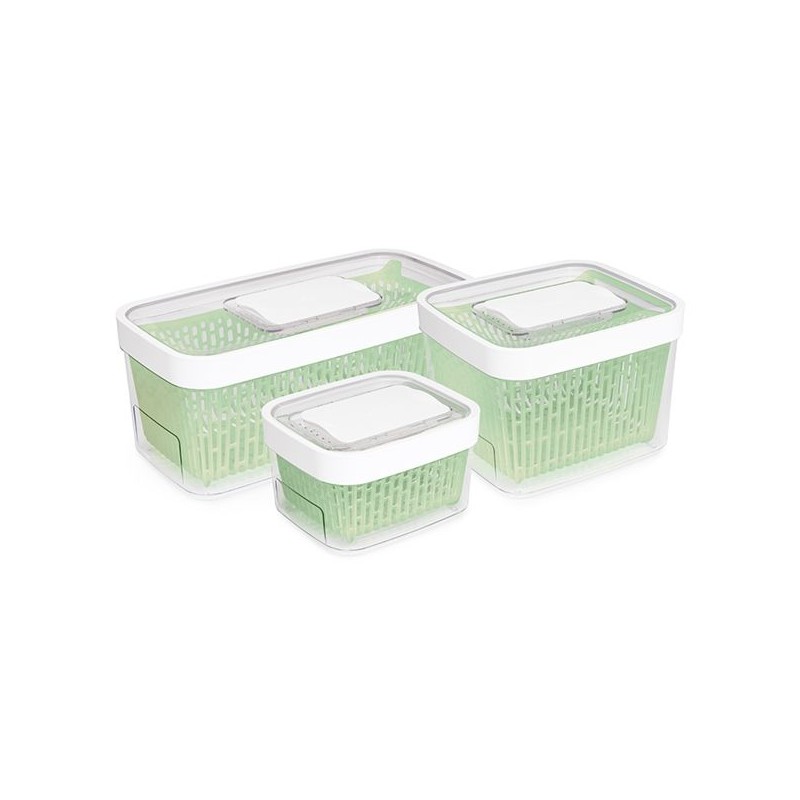 Contenitori ermetici per alimenti. Mantieni i tuoi prodotti freschi più a lungo. Ideale per carote, zucchine, cetrioli e altri prodotti lunghi. Non lasciare che i prodotti buoni vadano male prima del suo tempo. I prodotti Keepers sono dotati di filtri a carbone avanzato che intrappolano e assorbono il gas etilene, oltre a cestelli rimovibili che promuovono il flusso d'aria e le prese d'aria adeguati per mantenere l'umidità ottimale per diversi tipi di prodotti.