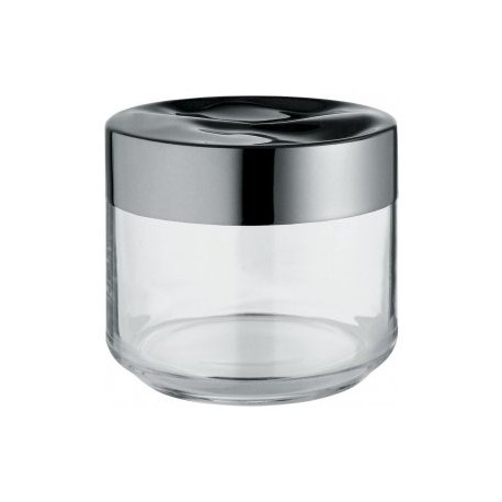 Barattolo ermetico in vetro con coperchio in acciaio lucido. Disponibile in 4 altezze: 9,3 cm, 12,3 cm, 15,8 cm, 21,6 cm. Design: Lluis Clotet.