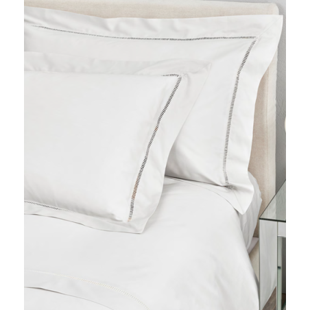 Set lenzuola in raso di cotone TC 300 con applicazione di macramè. Lenzuolo sopra con applicazione macramè sulla reverse dritta - dimensioni lenzuolo sopra: 265x290. Coppia federe a 4 volant con applicazioni di macramè - dimensioni federe (volant esclusi): 50x80 cm. Lenzuolo sotto con elastici - dimensioni: 180x200 cm. Vari colori disponibili.
