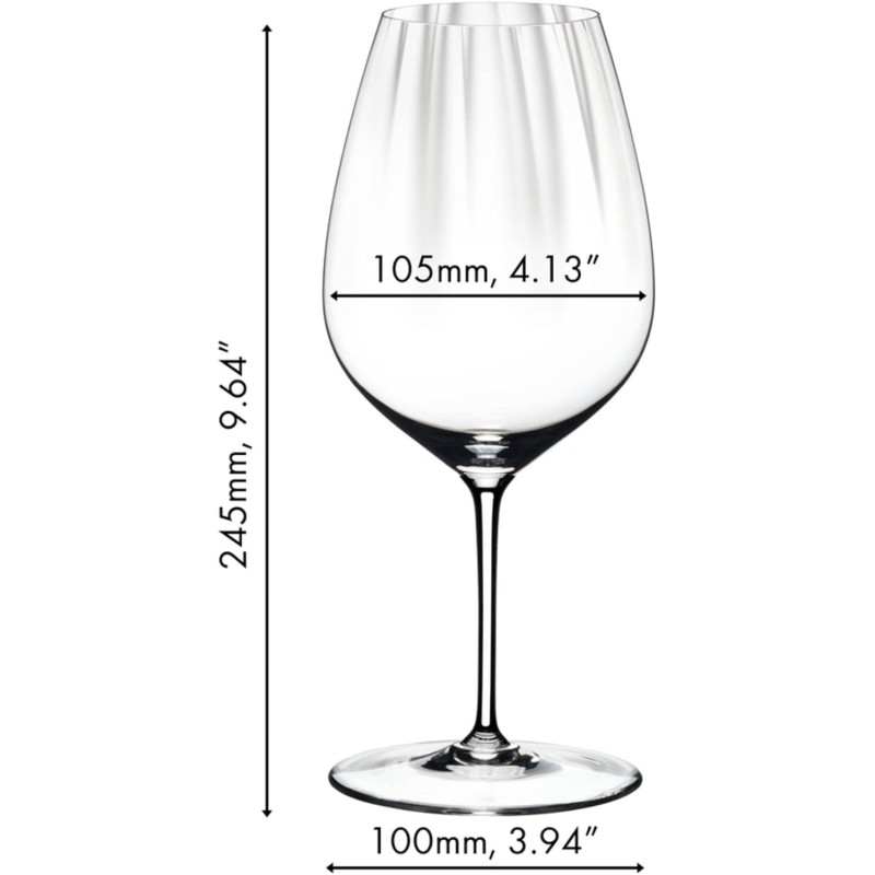 L'impatto ottico unico della performance non solo aggiunge un piacevole aspetto visivo al calice, ma aumenta anche la superficie interna, permettendo al vino di aprirsi e di evidenziare ogni aroma e sfumatura sottile. Materiale: cristallo. Inalterabile in lavastoviglie. Dimensioni: volume 834 ccm - Altezza 245 mm.