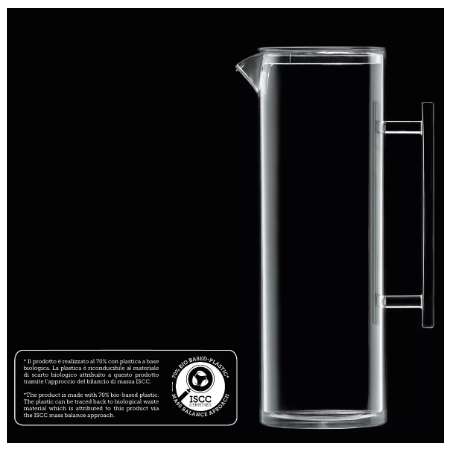 Dimensioni: Ø 10x15,7xh29,7 cm - 1700 cc Materiale: BIO-CIRCULAR PLASTIC (70%)* Designer: guzzini lab. Per i nostri 110 anni di storia (1912-2022), abbiamo creato la caraffa “110”, un omaggio al designer Charles F. Joosten e alla sua linea drink beverage del 1957 denominata Set Whiskey."110" è realizzata con il 70% di plastiche biocircular* derivate da residui di biomasse vegetali e coniuga rispetto dell'ambiente, trasparenza del materiale e idoneità al contatto con il cibo.(*) Il contenuto a base biologica con cui è realizzato questo prodotto viene assegnato utilizzando l'approccio del bilancio di massa ISCC.