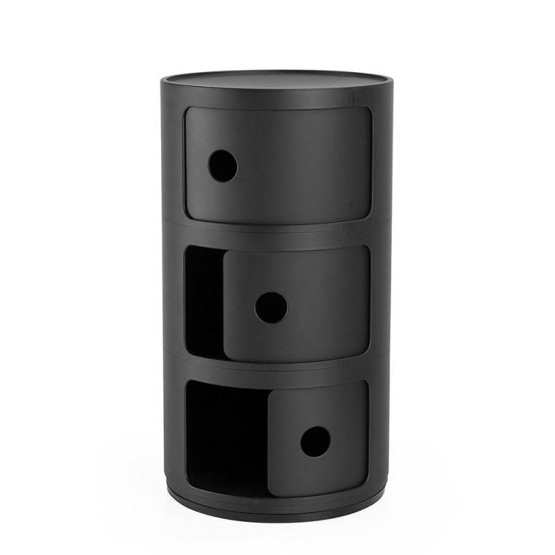 Design: Anna Castelli Ferrieri. Il Componibile, grande best seller del marchio, disponibile anche nella versione bianca e nera opaca per un’ulteriore veste di uno dei prodotti più famosi e identitari di Kartell che da oltre 50 anni popola le case di tutto il mondo. Oggetto funzionale realizzato in finiture moderne e attuali. La nuova edizione è in materiale riciclato derivante da scarti industriali e conserva le medesime caratteristiche di resistenza e funzionalità della versione originale. Disponibile con struttura fissa non sovrapponibile a due o tre elementi con diamtro da 32cm. Finitura mat effetto soft touch. Dimensioni: diametro 32 cm - Altezza 58,5 cm.