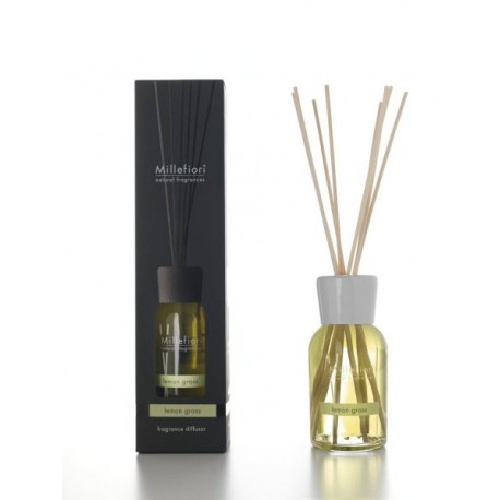Diffusore per ambienti Millefiori Milano Natural Fragrances con bastoncini in legno. Capacità: 250 ml Nel contenitore in vetro trasparente la vitalità e i colori accesi delle fragranze Natural.