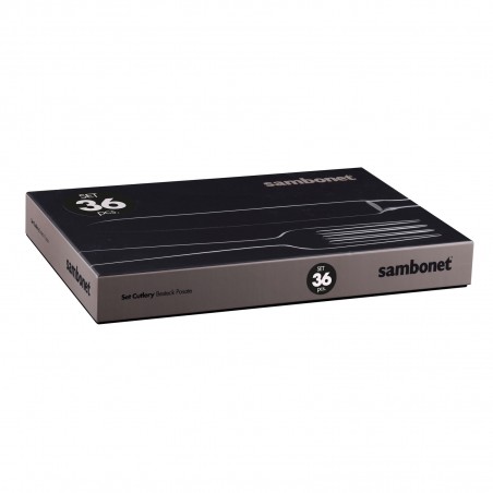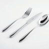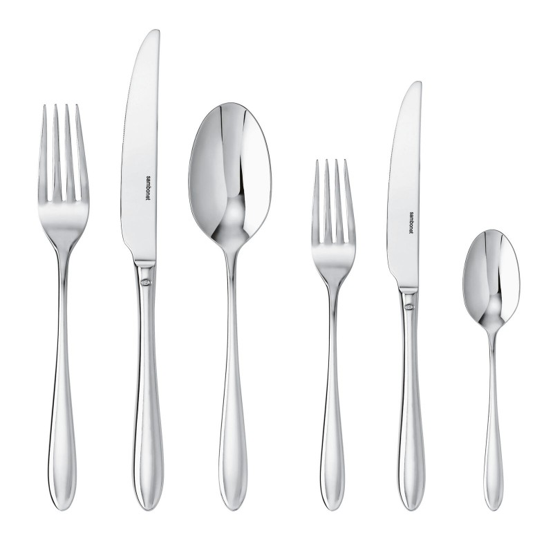 SUPER OCCASIONE! Set composto da 6 coltelli tavola monoblocco, 6 forchette tavola, 6 cucchiai tavola, 6 cucchiaini thè, 6 coltelli frutta, 6 forchette frutta. Acciaio inossidabile 18/10 lucido, resistente alla lavastoviglie.