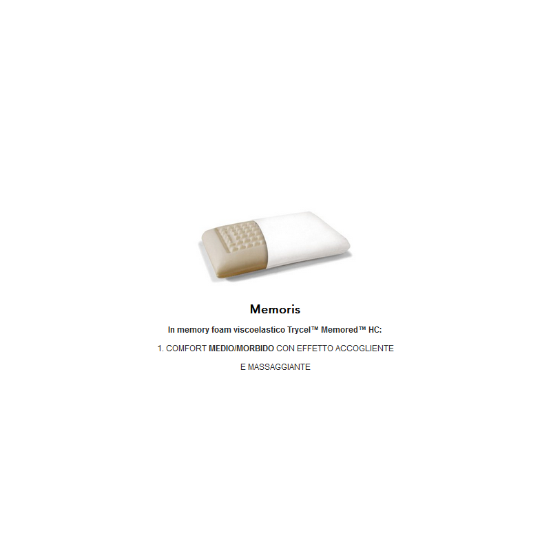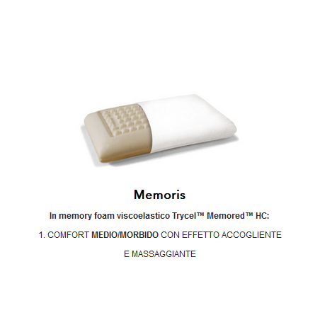 Guanciale in memory foam viscoelastico automodellante. Anallergico, traspirante, elastico, indeformabile, riprende la sua forma originale.