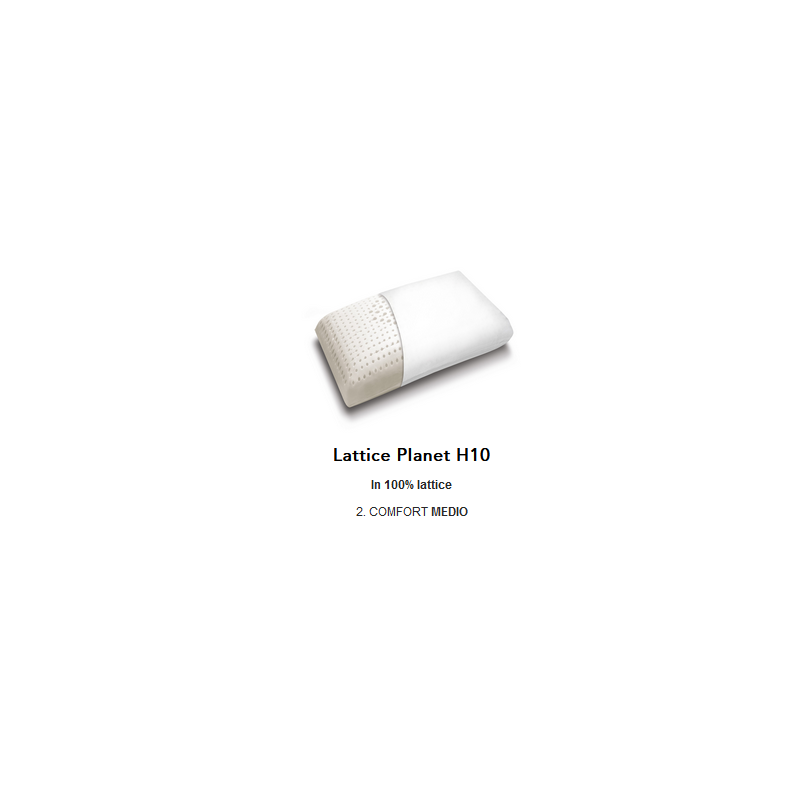 Guanciale in lattice esente da cariche inerti a struttura calibrata con zone a portanza differenziata. Dimensioni: cm 42x72x10 circa. Fodera: 100% cotone.