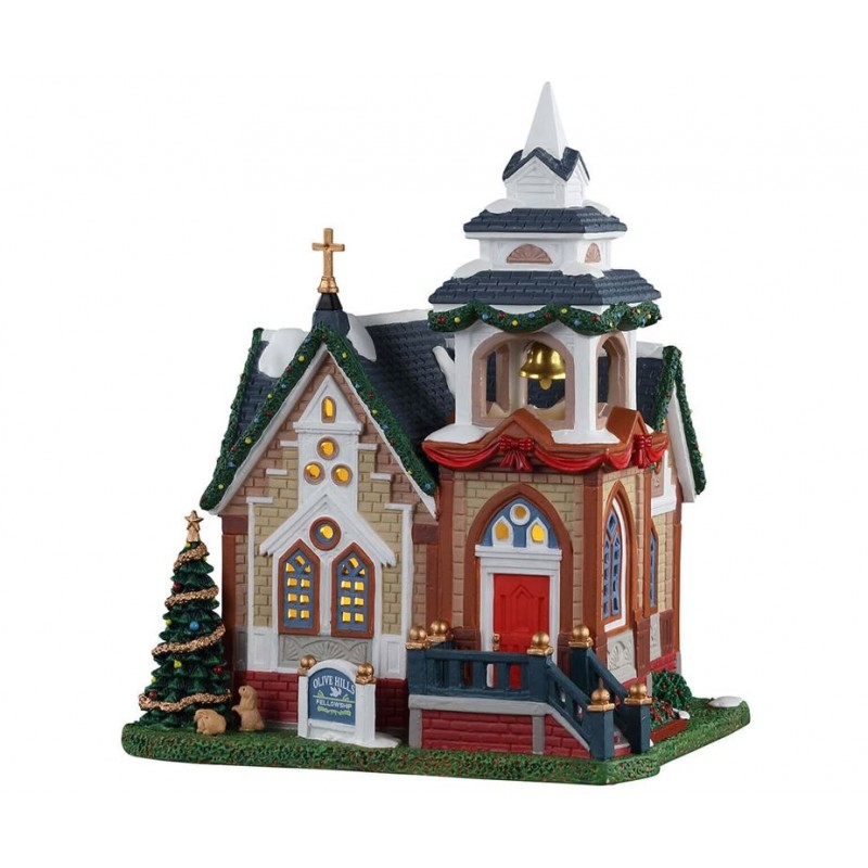 La borsa di studio Olive Hills aspetta pazientemente il giorno di Natale. La chiesa ha un elegante campanile, mentre il resto dell'edificio è decorato con rifiniture in legno, finestre dalle forme intricate e pietre scolpite. L'agrifoglio sta sbocciando nelle fioriere della chiesa e c'è un albero di Natale splendidamente decorato sul prato davanti. Anche il resto della chiesa è decorato: dalle luci sui cespugli ai nastri sul campanile. ca. dimensioni (A x L x P) 9,25 x 7,52 x 6,42 pollici 23,5 x 19,1 x 16,3 cm Anno di rilascio: 2021 Materiale: Porcellana Tipo di prodotto: Edificio illuminato Interruttore di controllo: Interruttore On/Off Elettrica: Con cavo da 1,83 m (6 piedi) o con cavo luce LED con vano batteria o cavo luce LED con adattatore.