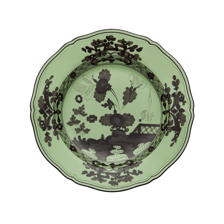 Porcellana sottosmalto e vetrificata. Resistente alla lavastoviglie. Collezione Oriente Italiano sulla forma Antico Doccia dove aerografo e fantasia del colore creano un meraviglioso intreccio decorativo. Dimensioni: diametro cm 26,5.