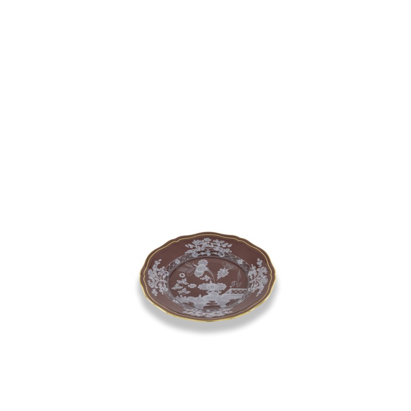 Porcellana sottosmalto e vetrificata. Resistente alla lavastoviglie. Collezione Oriente Italiano sulla forma Antico Doccia dove aerografo e fantasia del colore creano un meraviglioso intreccio decorativo. Dimensioni: diametro cm 17.
