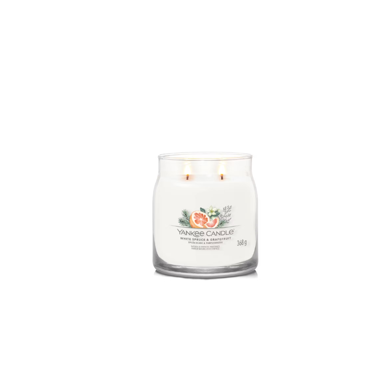 Note fresche e frizzanti ispirate al pompelmo e agli agrumi si combinano con esuberanti accenti che richiamano gli aghi di pino e il ricco abete, mentre tocchi al profumo di baccello di vaniglia e muschio regalano alla fragranza un’atmosfera accogliente. Tempo di combustione: 65 - 75 ore. MADE IN USA.