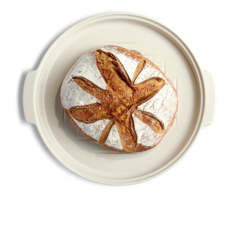 In ceramica refrattaria cuoce tutti i tipi di pane con un interno morbido ed una crosta croccante. Adatto a tutti i tipi di impasti. Il coperchio a cupola riproduce l’effetto del tradizionale forno a legna. Inoltre il coperchio può essere utilizzato per creare l’impasto e lasciarlo lievitare all’interno con il piatto della base da utilizzare come coperchio durante la fase di lievitazione.