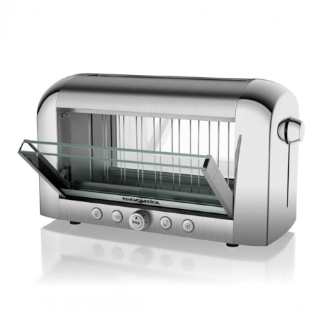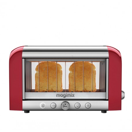 Controllo visivo per dei toast come piacciono a voi. Utilizzo ultrasemplice 1 tasto - 1 funzione. Funzione baguette tosta 1 solo lato. Funzione riscaldamento riscalda senza seccare le fette già tostate. Funzione decongelazione scongela e tosta il pane congelato Thermostat 8 livelli di tostatura. Quarzo a infrarossi ad elevate prestazioni. Sportello doppia parete isolante. Fette extra-large (38 mm) per tosta qualsiasi tipo di pane. Risalita molto alta per prendere le fette piccole. Centratura automatica per una tostatura uniforme. Espulsione del pane automatica. Cassetto raccogli briciole grande capacità. Pulizia apertura sicura degli sportelli. Potenza 1450 W - Materiali vetro, inox e alluminio Garanzia 3 anni. Dimensioni H225 x L395 x P180 mm. Carico (inox) 4,3 kg. Carico (colori) 3,9 kg. Il Tostapane Vision Magimix tosta, scongela o riscalda qualsiasi tipo di pane: baguette, toast, pane di campagna, brioche, pan carré, bagel, muffin, croissant…