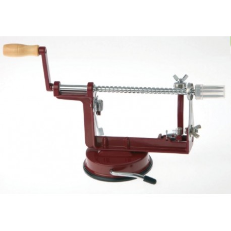 Pela mela multifunzione in metallo: pela, affetta ed estrae il torsolo. Dotato di base a ventosa per un'aderenza totale al piano di lavoro.